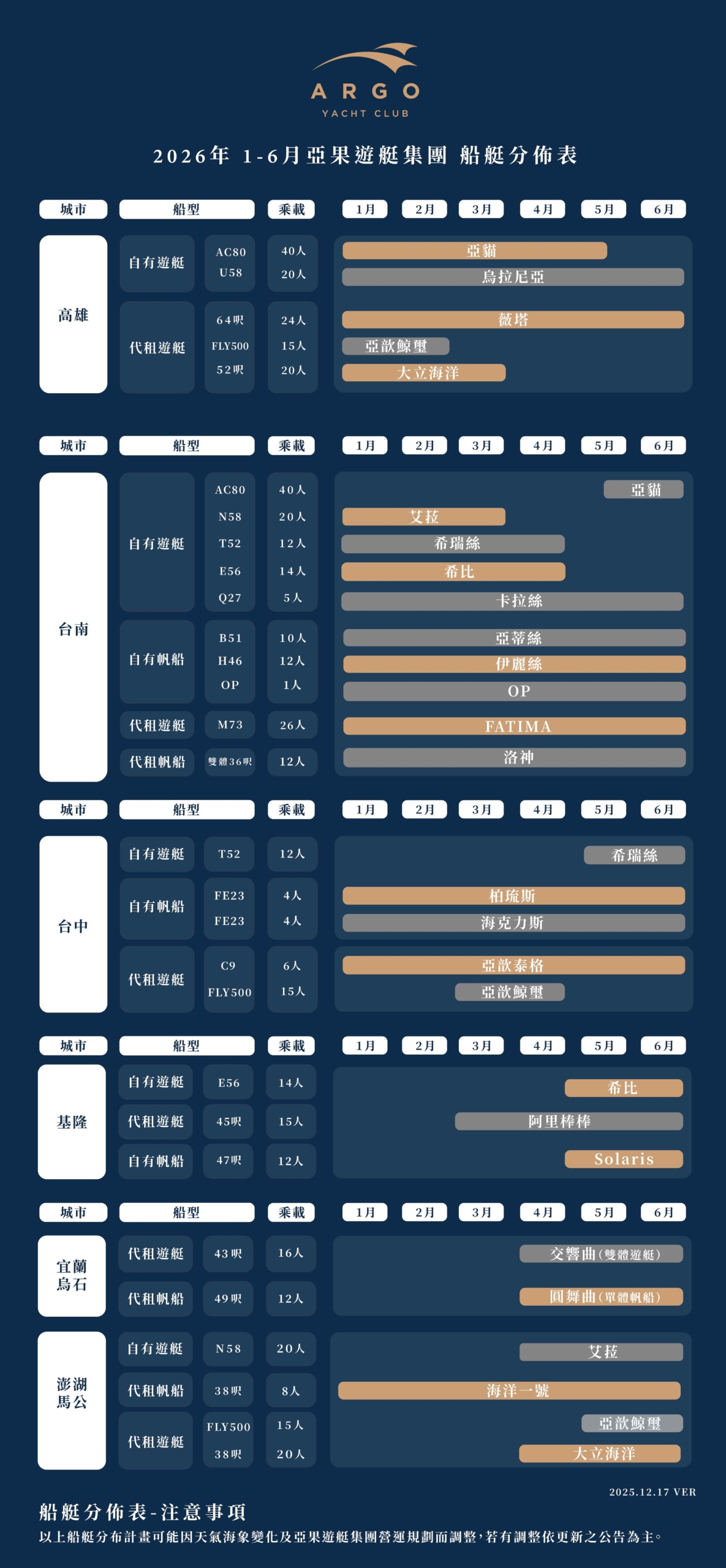 2026年1-6月 船艇分布表
