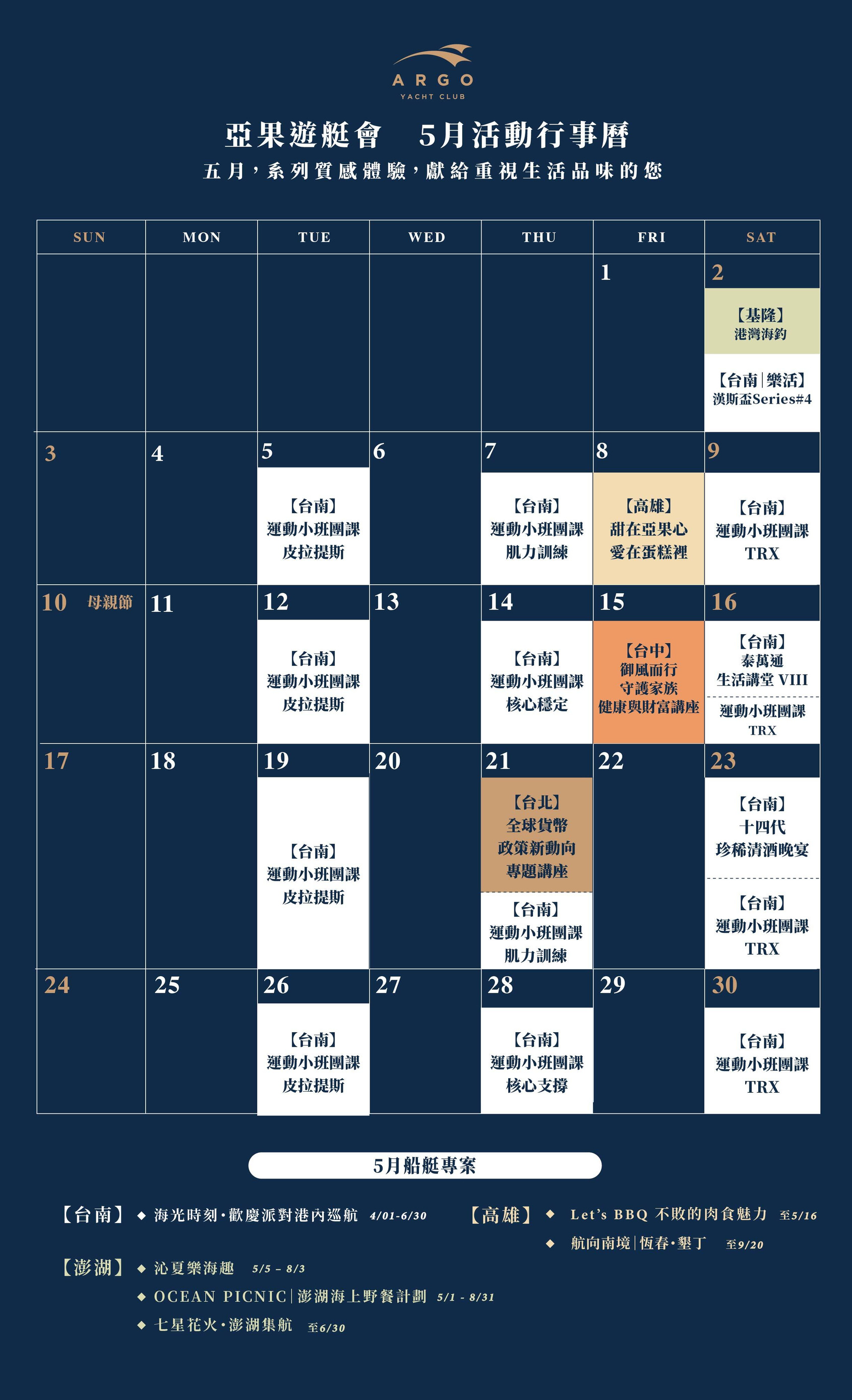 五月,一同走進港灣的碧海藍天,開啟您的夏日航程。